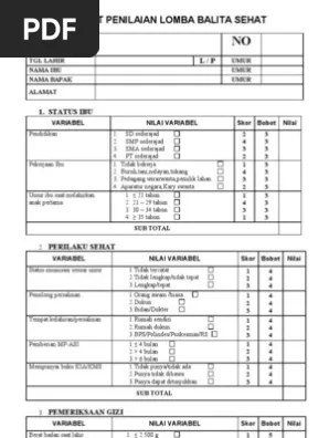 Penilaian Lomba Balita Sehat / Form Penilaian Lomba Hafalan Surat Pendek 3no767qrz3ld - Selanjutnya akan dilakukan proses penilaian untuk menetapkan peraih platinum award, gold award & silver award.. Supaya para ibu hamil dan anak balita di gampong, sejak dari kandungan sampai ia lahir, diberikan makan ikan, supaya tubuhnya cepat berkembang jadi besar dan sehat. Mahasiswa ipb university bantu pemulihan ekonomi di desa linggasari 10. Keseruan siswa sman 9 bogor ikuti pelatihan iot departemen fisika ipb university. Ayo ikuti lomba ipb virtual gowes 2021, pplh ipb university siapkan hadiah total 11 juta rupiah 9. Bhaksos phi 85 tahun 2013: